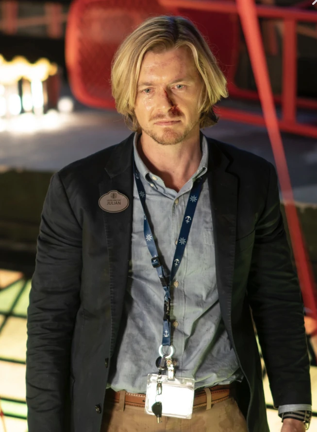 After successfully shooting the flare gun, Julian fell from the large height and was held by Athena. He weakly asked if she will let him go now, as she confirms and he thanks the survivors for choosing his cruiseline before dying from his wounds.