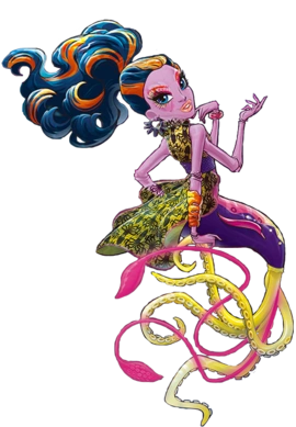 She is the daughter of the legendary Kraken, and a star dancer in the mermaid theatre with her friends Pearl and Peri. She used to be friends with Lagoona, but she turned into a bully because she was bitter that Lagoona had a respected family beloved by everyone while her father was believed to be a ferocious and evil beast and she felt like an outcast because of her appearance. Her bullying caused Lagoona to be humiliated on stage, giving her crippling stage fright and eventually driving her to move to Monster High. With Lagoon gone, Kala became the Great Scarier Reef’s top dancer.
