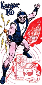 Kanjar-Ro is a smug alien supervillain and a supporting antagonist in DC Comics, being a supporting antagonist to the Justice League, as well as an enemy of Green Lantern and one of the two archenemies (alongside Lady Styx) of Adam Strange. He first appeared in Justice League of America #3 (February 1961) in a story entitled "The Slave Ship of Space" and was created by Gardner Fox and Mike Sekowsky.