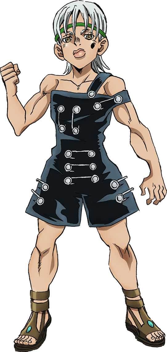 Whilst he was climbing a telephone pole, he had been pierced by the Bow and Arrow thanks to Yoshihiro Kira, resulting in a hole in his left cheek and the birth of his Stand, Boy II Man.