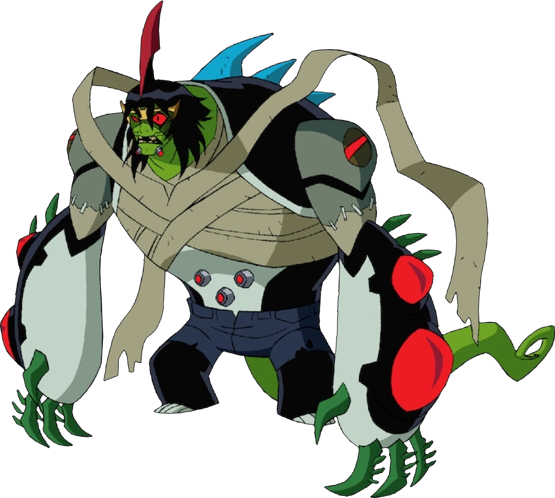 - Omniverse Flashback Mutation: The sixth mutation that Kevin underwent in a flashback portion of the Omniverse episode Weapon XI: Part 2. It occurred when 12-year-old Kevin absorbed DNA from the Omnitrix, resulting in a monstrous, horrifying amalgam form that included parts from numerous classic aliens. This mutation also had access to the powers of 10 of Ben's additional aliens from the original series such as Cannonbolt's rolling, Wildvine's plant control, Eye Guy's energy beams and Upchuck's matter ingestion.