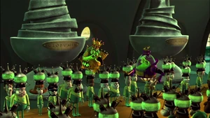 Images of the tyrannical, arrogant, manipulative, and self-centered king of Yokus. King Goobot from Nickelodeon's Jimmy Neutron franchise.