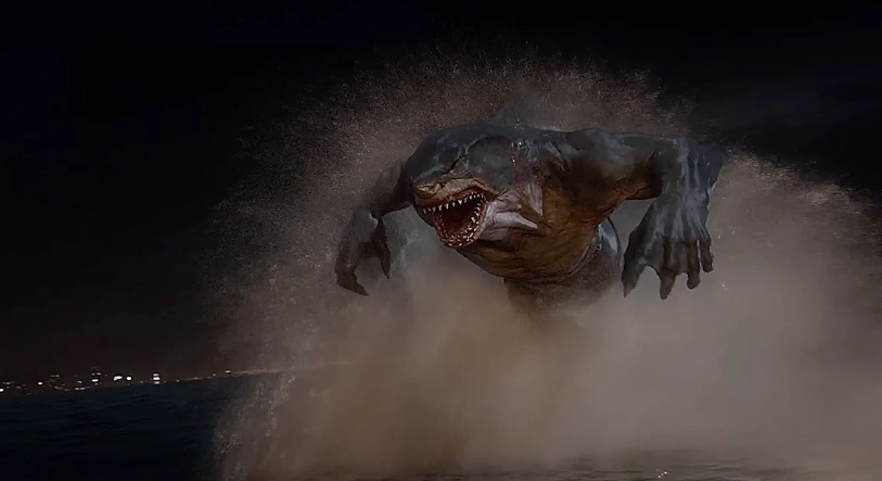 Angrily, King Shark attacks, eventually smashing Barry against a nearby car. However, before he can kill Barry he is scared away by the sounds of A.R.G.U.S. soldiers approaching. Before leaving, he claims that while Flash may be fast, he is not as fast as King Shark in the water and that they will never catch him in his element.