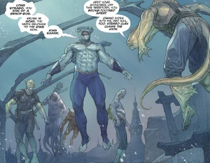 Images of the brutish mutant shark called King Shark from DC Comics.