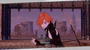 In an alternate timeline from Three Houses, the real Monica von Ochs is found and rescued by Shez and their class. As they escort Monica out of the fort, they are ambushed by Kronya, who attacks them. Upon being driven back, she releases a captured Demonic Beast on them. Kronya is shocked when Shez and their allies defeat the creature, remarking thta Thales will not be happy with this turn of events before retreating.