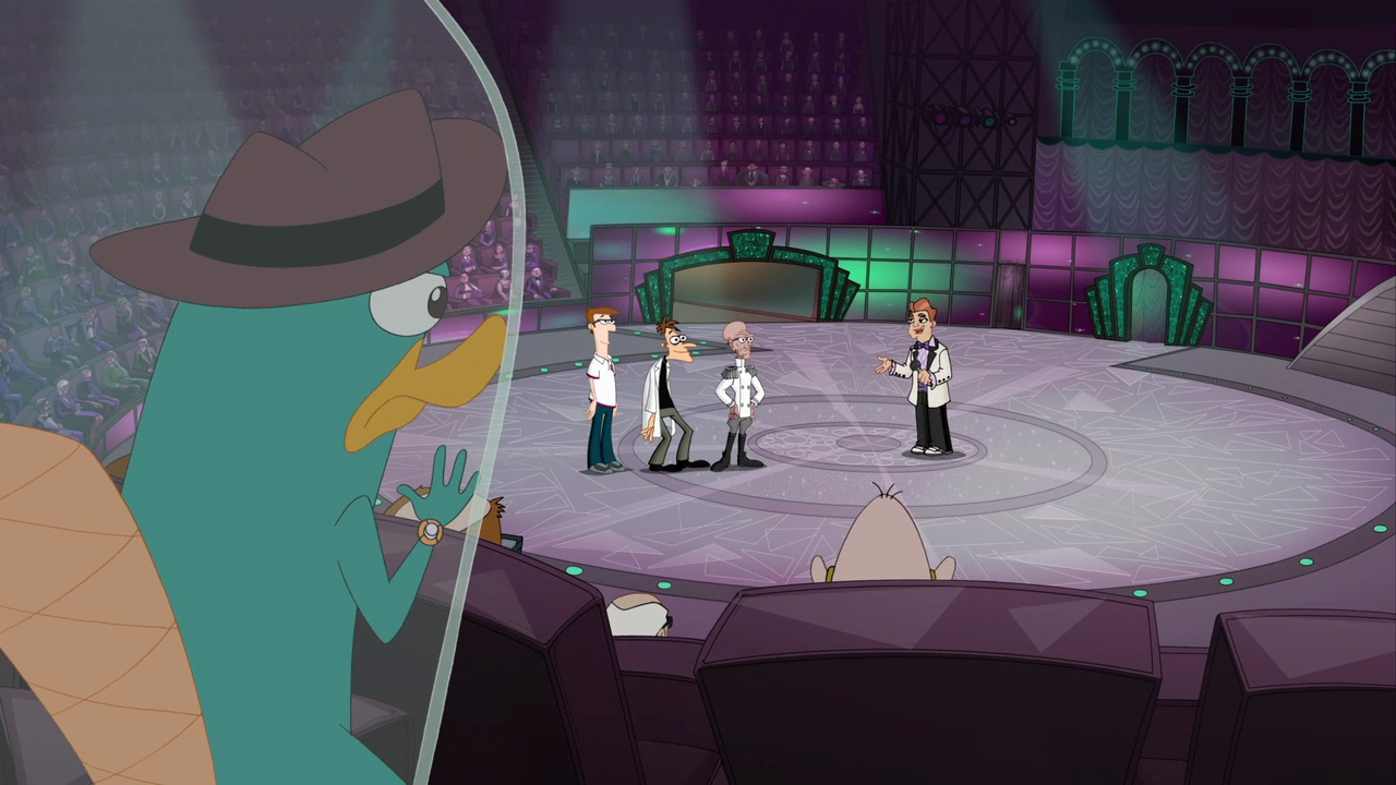 Perry watching the pageant along with the other villains, as he is worried about Lawrence participating as a contestant alongside Doofenshmirtz and Rodney.