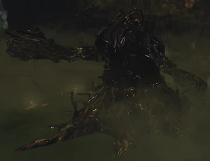 The Leechmonger is the first boss fought by the Slayer of Demons in the Valley of Defilement, found in a box full of leeches. The player starts out with the boss in the distance. The Leechmonger's only attack here is to spit out a ball of leeches at the player. The player is free to use a bow and arrow or spells to attack Leechmonger, but before long it will summon a "ring" of leeches around itself, rapidly restoring its health until the ring falls off upon being attacked enough. At a close rate, the Leechmonger attacks the player by striking them with its arms. If the player enters the bog to get close enough to the Leechmonger to attack it with melee weapons, leeches will attach to their legs, both slowing down the player's roll dodges and slowly saps away at their health. The Leechmonger itself is not a challenging foe as it has an extreme weakness to fire and its attacks deal mild damage, but it can become somewhat of a nuisance if it manages to heal multiple times.