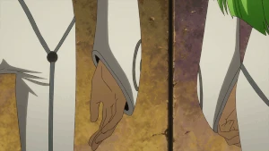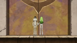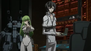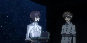 Suzaku accepting to be Lelouch's successor as Zero while they plan the Zero Requiem, Lelouch's assassination by Zero, to end the world's conflicts.