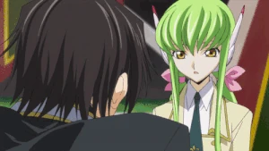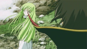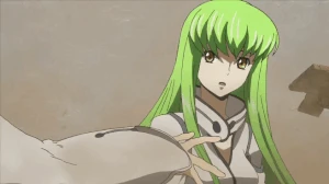 C.C.'s reaction after hearing Lelouch's marriage proposal.