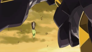 Lelouch after his helmet split in two when it was shot by Suzaku.