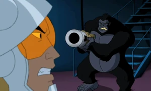 | “ | Lex Luthor: Since there's only one monkey left around here, I'm assuming that the Justice League found a way to stop the carrier wave. Grood: There's more than one way to peel a banana. Next time-- Lex Luthor: I wasn't going to do this for another few weeks, but seriously... [rises from table] Turning all of humanity into apes? [aims a weapon at Grodd] THAT was your master plan? [shoots Grodd] Listen up. From now on, I'm in charge of this operation. Anybody got a problem with that? |