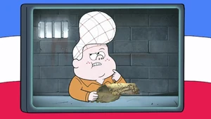 Bud and his son Gideon about to destroy the Mystery Shack with a Wrecking ball.
