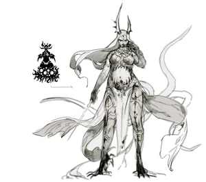 She also resembles Shub-Niggurath from the Cthulhu Mythos, with both being the Brood Mothers for demonic offspring.