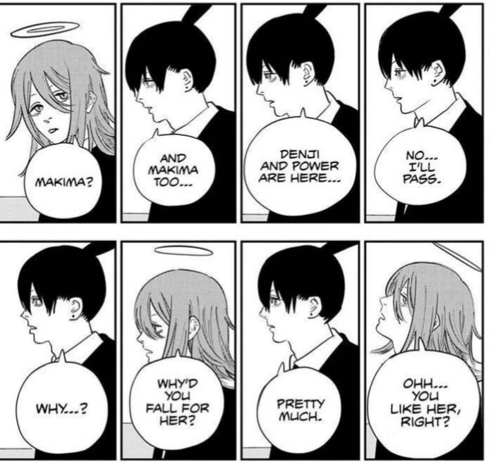 | ~ Denji's conversation in Chapter 3 with Aki about Makima. |
