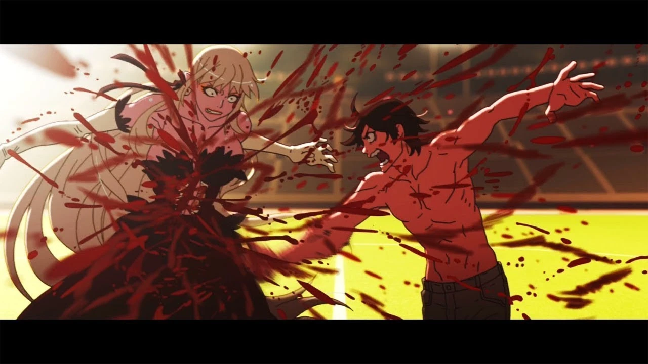 The brutal fight between Kiss-Shot Acerola-Orion Heart-Under-Blade and Koyomi Araragi in Kizumonogatari that was used as an inspiration for the final battle between Makima and Chainsaw Man.