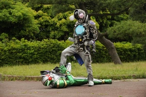 Then, Uesugi transformed into the Jewel Dopant and battled Kamen Riders. Philip deduced the Dopant's only weakness and defeated him by stricking at the jewel's eye in his belt. Defeated, Uesugi demanded why Rui had a police detective like Jinno involved, and Rui answered it was because he (Jinno) was as gulliable as she was, revealing that in the past she was tricked by Uesugi into taking the blame for him after he tore some pinwheels.