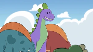 Malison acts as a murderous dinosaur wanting nothing more than to kill Diddly for putting Diarrhea Sauce in everyone's pizza, implying that before that incident, she was a loveable dinosaur.
