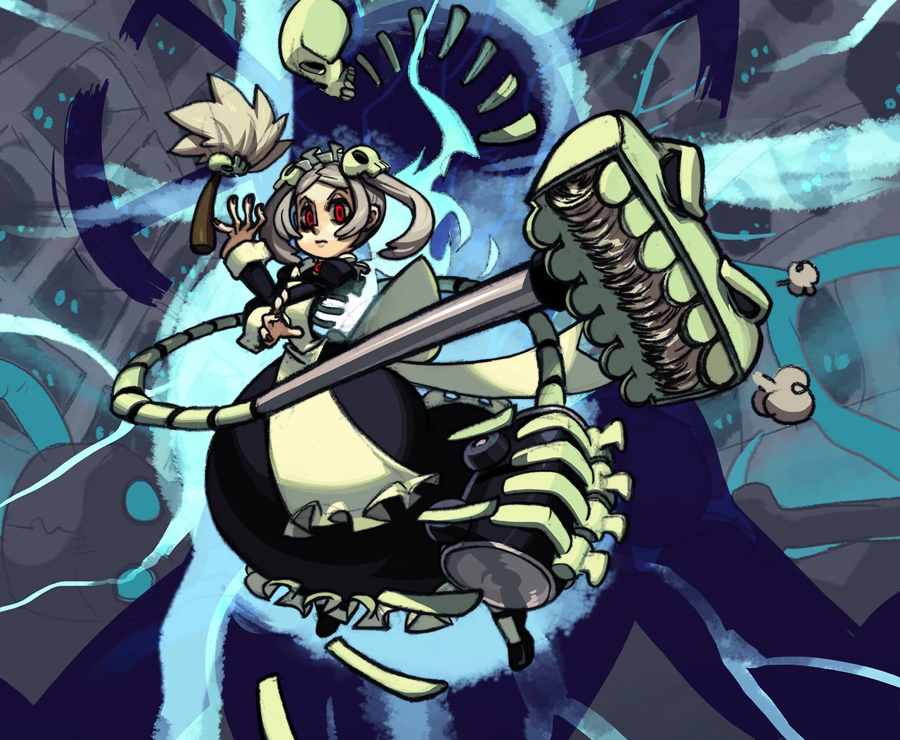 As the Skullgirl Marie can raise and manipulate the undead, more than just moving as they did in life, she can also make them and the individual parts of them float. When grouped, they can even be powerful enough to lift a building.