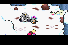 They later meet again on Tanetane Island. After Lucas, Kumatora, Duster, and Boney defeat the Barrier Trio, the Masked Man accompanied by six Pigmask Majors and a Colonel enter the scene. The Masked Man takes on a flashy entrance, before easily defeating Lucas and Co. with a single lightning strike and pulling Missy's needle. Missy remarks how disappointing the outcome was before she vanishes. For the last time in the chapter, the Masked Man tries to break into Chupichupyoi temple. Impatient to a Clayman failing to break in, he explodes the Clayman and tries figuring out how to get in himself. However, a Mr. Saturn that took Lucas's rusty courage badge which was passed down by his father earlier gives it back as it has been fixed into a Franklin Badge. When Lucas meets the Masked Man this time, they defeat two of his Pigmask Majors along with his Colonel, and reflect his lightning strike right back at him. The Masked Man and Lucas then engage in a battle, until the Masked Man ultimately malfunctions. The Pigmasks, shocked that their commander they once presumed was unstoppable, make a retreat alongside the Masked Man.