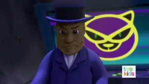 Mayor Humdinger beginning his transformation into a giant and becoming Mega Mayor Humdinger.