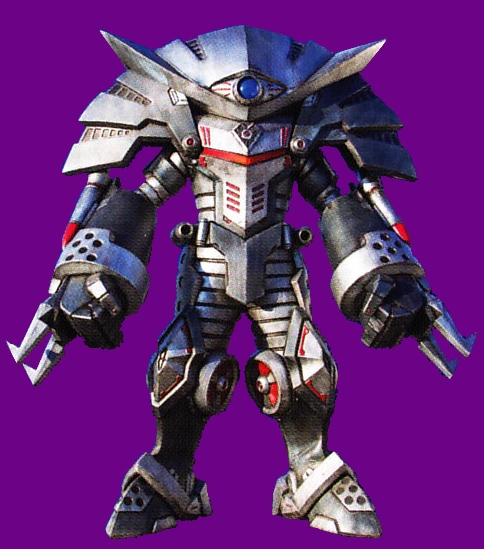 The MegaZord Beta or Type Beta classification are a set of robots Vaglass uploads from their hyperspace to the real world with the use of data collected from Metaloids. These MegaZords have large upper bodies and dome-like shell in place of their heads. Once the Metaloid data is completely transferred, the MegaZord enters the real world with properties from the Metaloid's source material.