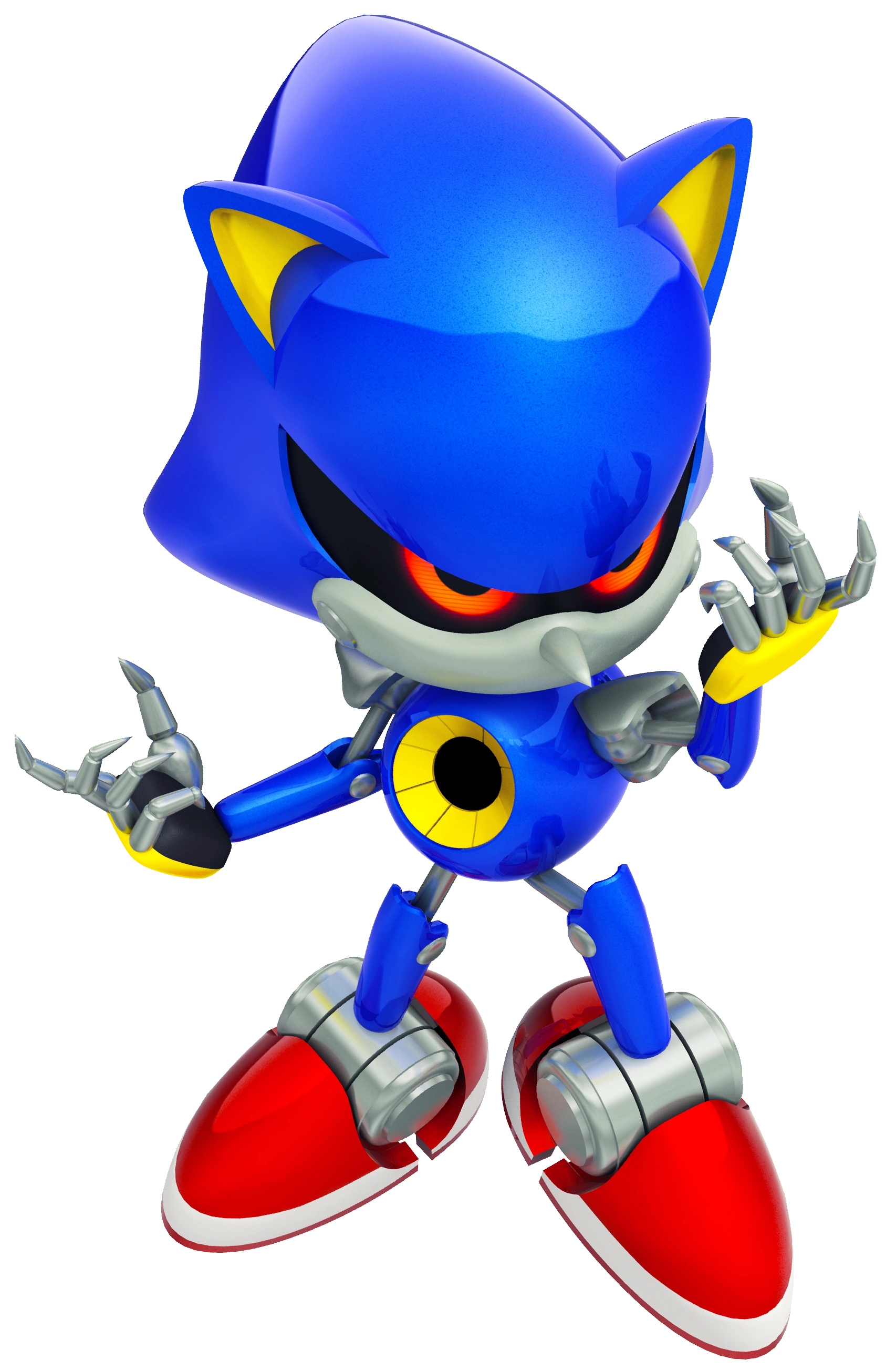 Dr. Eggman will give Metal Sonic the Phantom Ruby and the robot uses its power to transform into a monstrosity called Giga Metal. In this form, Metal Sonic will chase the heroes, breaking apart the floor as he does so, while also launching bombs to slow them down and firing powerful energy beams from his mouth. However, his Giga Metal form is eventually shattered after losing the Phantom Ruby, and Metal Sonic falls from view defeated.