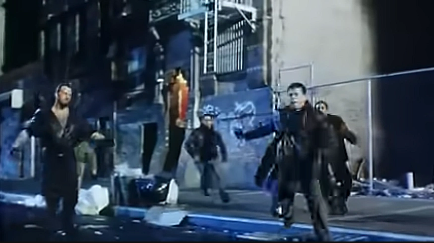 A few nights later, they met with a drug dealer who gave him fake cocaine, and chased all across the city, until he was cornered at rooftop.
