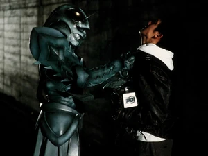 Midorikawa, the Mantis Orphnoch, is an Orphnoch bounty hunter employed by Smart Brain alongside his partners Aoki and Akai to recover the Faiz Gear from Mari Sonoda and an antagonist in episodes 3 and 4 of Kamen Rider 555. He appears to be the most senior of the three bounty hunters.