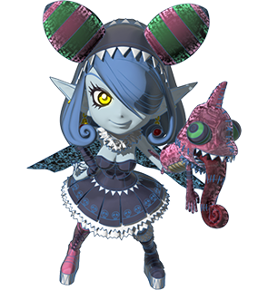 Mienumon can turn herself invisible to avoid detection. She is very skilled with stealth and can pass through red lasers with ease while invisible. Her chameleon puppet can stretch out its tongue to either attack or steal an item.