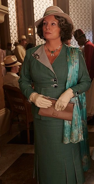 | ~ Miss Van Schuyler showing her obsession on Linnet's pearl necklace, a hint to her true nature (in 1978 film). |