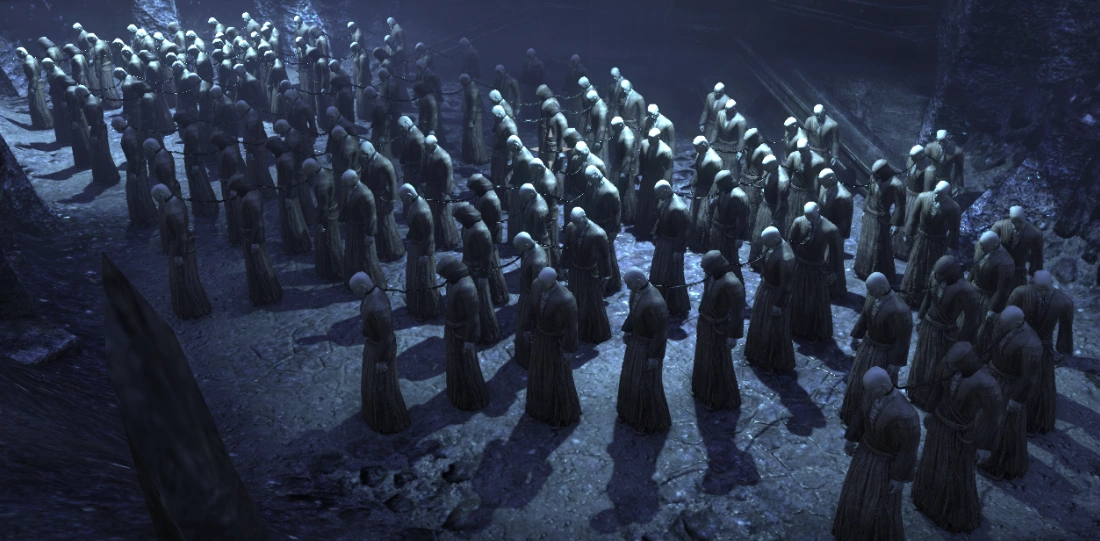 While Mannimarco plays at manipulating the Imperial Empire from behind the scenes Molag Bal is far less concerned with physical rule and far more concerned with sending souls from Nirn to Coldharbour. At the behest of his lord and as part of his basic necromantic practices, Mannimarco frequently rounds up citizens to be sacrificed, removes their souls from their bodies, and pledges them to Molag Bal, sending them to Coldharbour. Once in Coldharbour the spirits of those sacrificed languish for as long as they need to until their wills are broken and eventually become Soul Shrivens, emotionless shadows of their former selves, governed either by feral madness or by the direct will of Molag Bal himself.