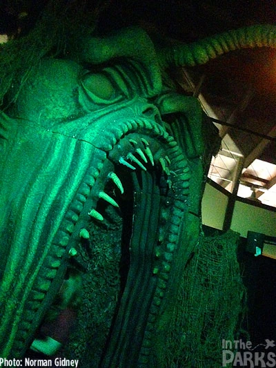 Monstro is encountered towards the end of the attraction, where it swallows guests into its stomach. As guests traverse its innards, they come across the corpses of Monstro's past victims, and are confronted by Pinocchio's crazy puppets.