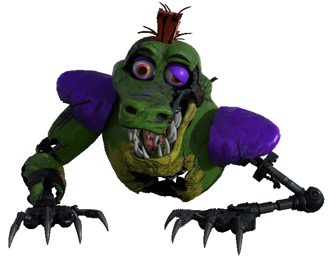 He is an animatronic alligator who was once hacked by Gregory into following Vanny's orders to kill any children left at the Pizzaplex, which ironically resulted in Monty being out to kill the boy once he redeemed himself. Wrathful but not very smart, Monty is the strongest and most aggressive of the Glamrocks.