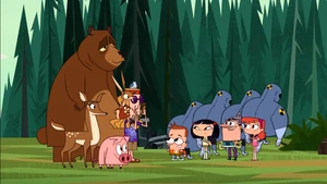 It was at this point, the sidekicks realized that they had accidentally made it to the top of the mountain, which was their goal all along. Nate Urman came up to congratulate them for their victory, only for it to be revealed that he was just the Moustachesquatch in disguise, who tried to attack them again. Fortunately for the sidekicks, their cargo plane came by and picked them up to safety before the Moustachesquatch could attack them.