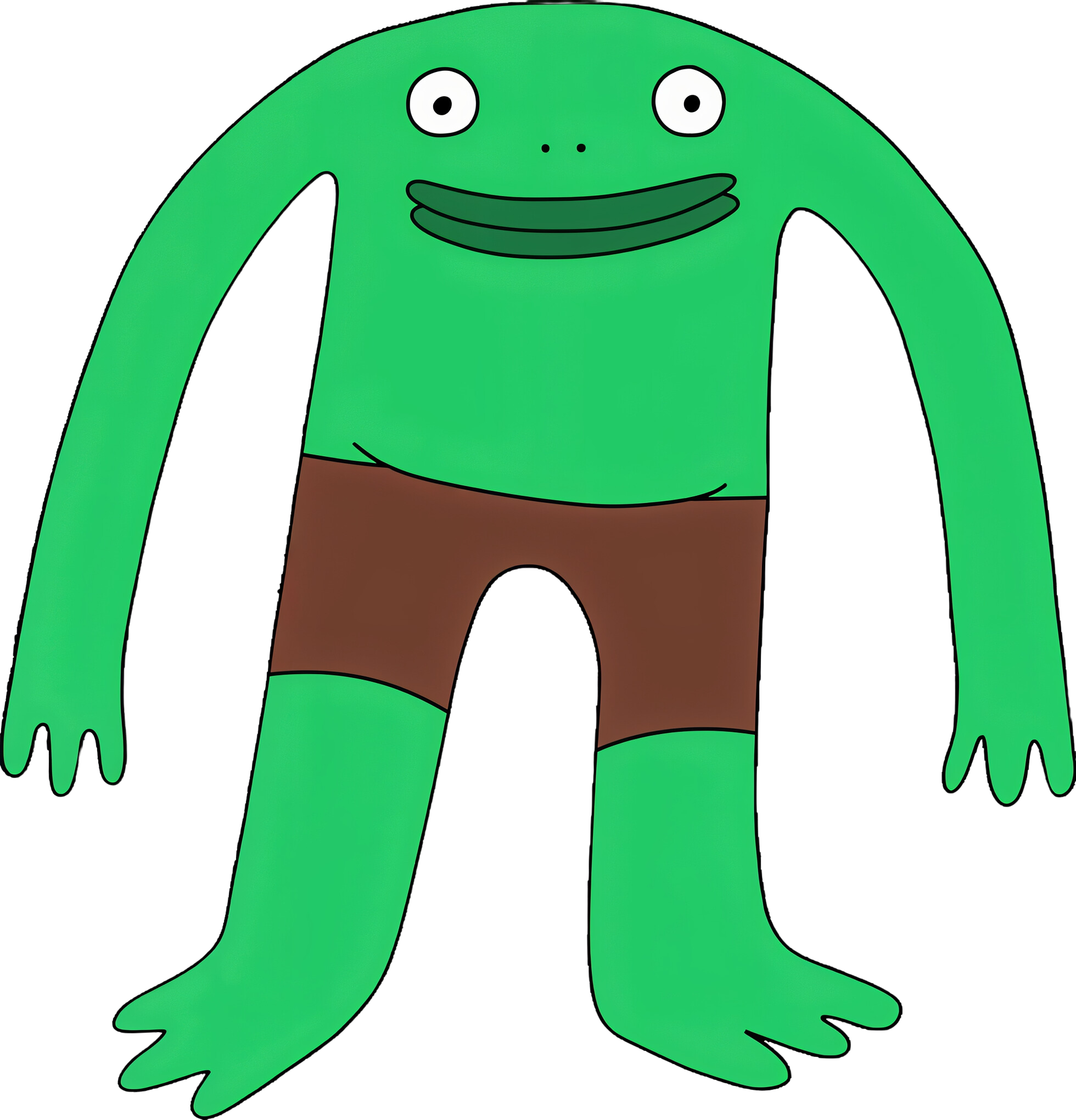 Despite his crimes, he is also by far the most popular and famous person in the world. People all over the globe seem to unanimously love him, with some even asking him to have sex with their significant others and having seemingly no issues with Frog’s constant destruction or murders. His impulsive and unprovoked violence, extraordinary and seemingly unmatched strength, blinding speed, unrivaled wealth, legendary charisma, and dominating diplomatic power make him the most powerful, most successful, and most dangerous person in the Smiling Friends universe.