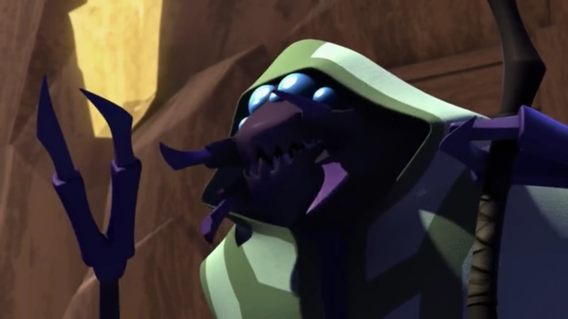 He is voiced by Robert Englund who voiced Vulture of Spectacular Spiderman, The Riddler of The Batman, Stag- Man and Anti Pops of Regular Show, Felix Faust of Justice League, Scarecrow of Injustice, Freddy Krugrer of Nightmare on Elm Street, Samuel Lee of Hawaii Five O.