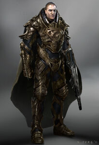 Battle Armor: Nam-Ek, as a Warrior Guild member, was hardly ever seen not wearing a suit of extremely durable and fiercely intimidating Kryptonian battle armor, equipped with a breather.