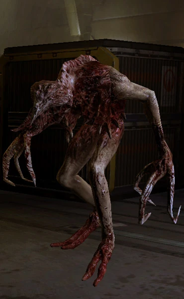 Dividers are tall, lanky Necromorphs, able to split apart into smaller Necromorphs after they have been damaged enough. These Divider spawns (head, hands and legs) are not as durable as the original Divider, but they are very fast. They move along with tentacles and jump onto and attack their enemies so the head could suffocate the victim, severe it from the body and take control of it. The characteristic trait of Divider is it's very long and loud moan indicating it is near.