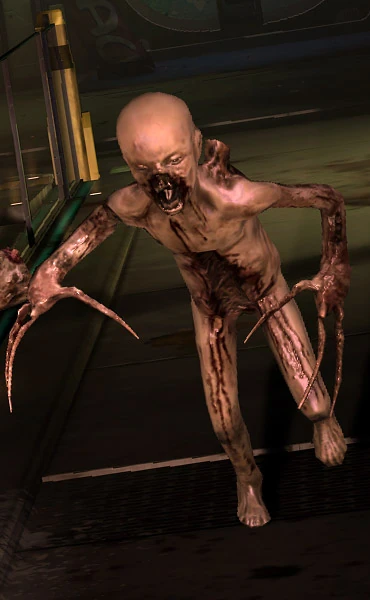 Feeders were created from the hosts that consumed Necromorph's flesh. Their bodies were grotesquely emaciated, with its bones and skeletal system which gives them almost skeletal appearance which allows them to have increased agility and run quickly. They also lack eyes so they rely on their enhanced sense of hearing to locate victim. They always attack in groups and emit sounds similar to chimpanzee to alert others of intruder's presence.