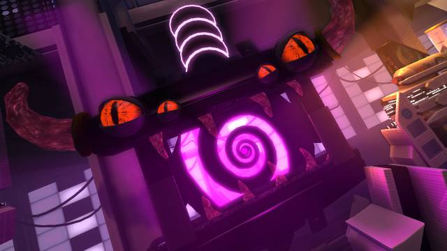 Sackboy then battles the Negativitron. First, he attacks the Negativitron's brains in the HampsterTron 2000, then fights midair on bounce pads with a Grappling Hook as the Negativitron sucks everything up, and then uses Grabinators to throw cakes at the Negativitron's brains while dodging plasma blasts. After completing these phases, Sackboy stomps on his final brain atop his negativity blob, killing him and releasing all of the creativity back into the Craftverse.