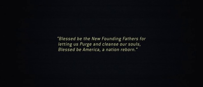 In a dystopian alternate-reality, a political party known as the New Founding Fathers of America ("NFFA"), controlled by Caleb Warrens, has taken over the United States government and established a new regime after an economic collapse and rising social unrest. Their main alleged goals, which often have ultra-nationalist and religious undertones, is to usher the nation into a new phase of prosperity and they achieved this by sanctioning a 12-hour period of lawlessness and rampant crime, including murder, every year, known as The Purge.