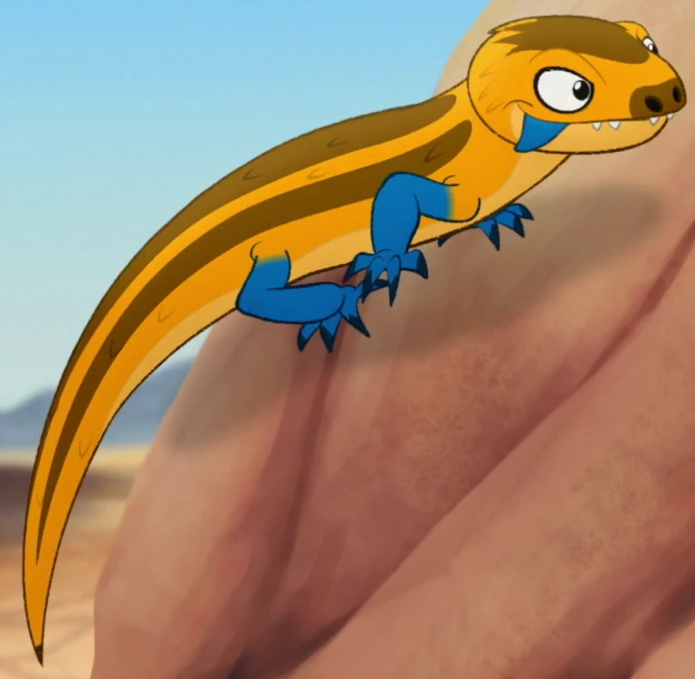 In 'Undercover Kinyonga,' Njano and the rest of the skinks are listening to Scar's discussing his plans with Ushari and Janja when they notice the chameleon Kinyonga nearby and chase after her. Kinyona tricks Njano into crashing into Shupavu but eventually the skinks corner her but flee when the Lion Guard appears.
