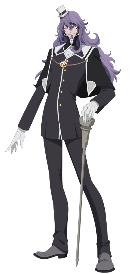 Possessing Eldmeld Dittijohn's body, he maintains most of his appearance, exchanging the large black hat for a small white hat. Also, he wears a Demon King Academy teacher's uniform.