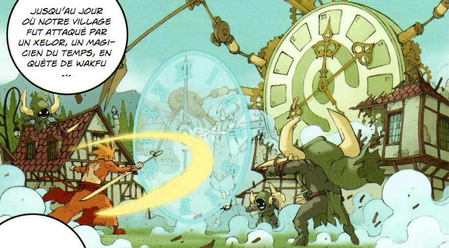 To find a large quantity, he moves his mobile fortress (in the shape of a giant clock) into the forbidden forest near the village of Yugo. He wants to attack the Big Soft Oak and the emptiness of his Wakfu until he dies from it. Unfortunately for Nox, the reserves of this plant entity are not as large as expected. As he looks out the porthole of his fortress, he sees Alibert, Yugo's adoptive father. He decides to pay him a courtesy visit.