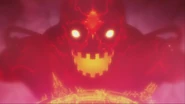 In Chronophantasma, Take-Mikazuchi is the final boss in Story Mode, summoned from space by Hades Izanami. Since Relius had opened all the Gates, causing the surface to be much thicker with seithr, it could fire as and when it likes, rather than once every 4 years. It took Jin, Noel and Ragna with his BlazBlue activated to defeat it. After its defeat, Hades Izanami merged Take-Mikazuchi with the souls gathered from the Monolith. Take-Mikazuchi is now part of the new Embryo floating above the ruins of the 5th Hierarchical City of Ibukido.
