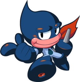 Oil Man was originally built to be a maintenance robot that can fill up robots with a special type of Oil. However, he was reprogrammed by Dr. Wily to help him conquer the world. His signature weapon is the Oil Slider, a blob of oil that flattens on the ground if it doesn't hit a target, where it then can be used as a snowboard.