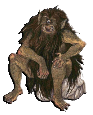 It appears as a 10 foot tall giant with superhuman strength, with hands and feet that contain ten digits each. With a very wild and beast-like temperament, it sports a long mane of red hair (mostly depicted as black or brown), and just as much facial hair, with both nearly reaching to the ground.