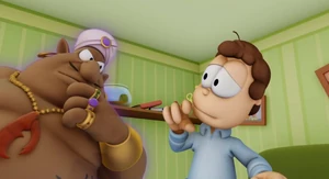 Back home, the three read an article on the internet about good and bad genes, but Garfield isn't interested and makes Jon open the bottle, only at first it seems like there's nothing inside, but then Omar and Jon come out. prepares to fulfil his wishes. However, it is Omar who gets the upper hand and sets Jon up to grant him wishes, threatening to turn him into a frog. Garfield asks them why he does this and Omar replies simply because they like to be waited on, and Garfield replies that he understands.