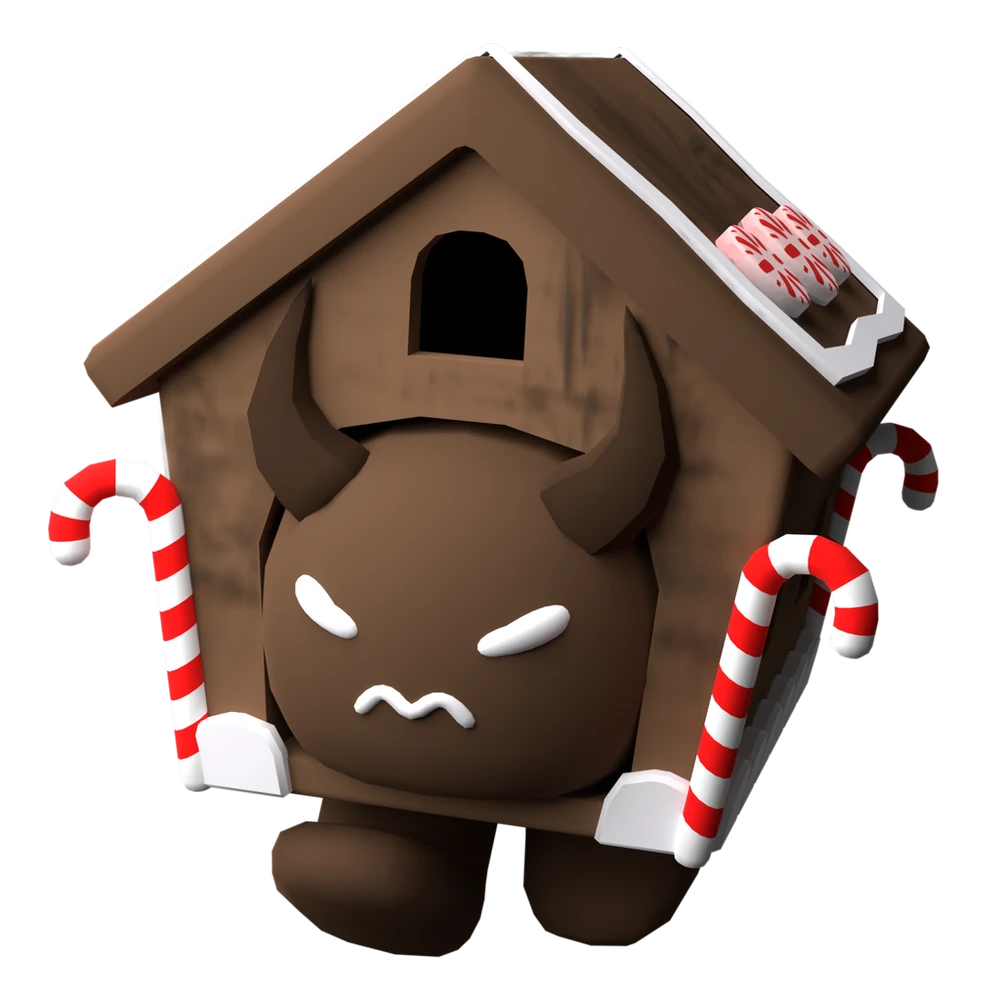 He is a sentient gingerbread house and one of the wishlist items in the 2023 Christmas event. He is also presumably one of the Toymaker's henchmen.