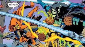 Phil raided on of Osborn's lairs that Osborn happened to be inside of. Osborn confronted Phil. Unaware that Osborn had the Carnage Symbiote, Phil attacked Osborn. To Phil's complete surprise, Osborn caught the blade of the plasma sword. Osborn then insulted Phil for never coming up with an original Goblin name. Osborn then impaled Phil through the chest with symbiote blades, killing Phil.